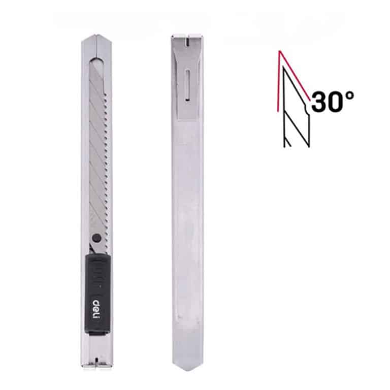 E2034 là mẫu dao rọc giấy nhỏ sử dụng lưỡi dao 9mm của Deli. Điểm đặc biệt của E2034 so với các mẫu dao rọc giấy nhỏ khác là lưỡi dao cắt góc nhọn 30 độ. Đều này giúp bạn có thể sử dụng dao để chạm, trỗ các chi tiết nhỏ một cách linh hoạt hơn.